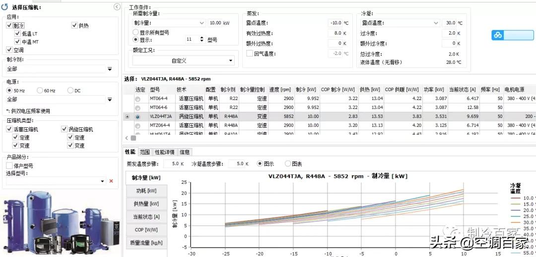 主要看我们需要什么品牌的压缩机,一般比泽尔、谷轮、丹佛斯的压缩机比较多,我们可以直接用他们各自品牌的选型软件: 比如比泽尔的: