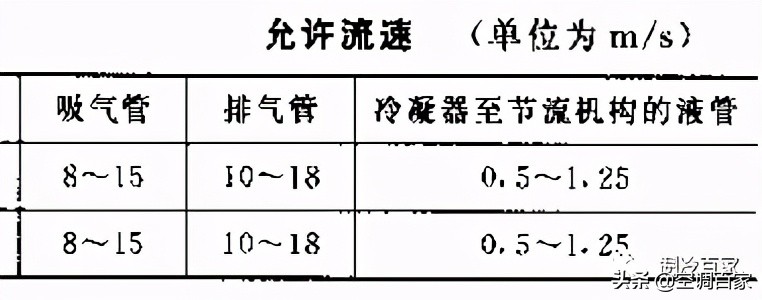 最后,用这个容积流速除以不同管径下的截面积,就可以得到不同管径下的冷媒流速: