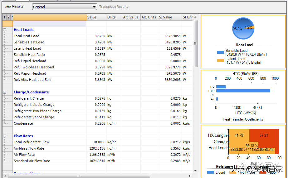内外机连接管规格:液管 Φ6mm,气管 Φ9.52mm,连接管长度:7.5m。后续可靠性试验时加长连接管长度:15m,试验连接管总长度:22.5m。 一、蒸发器的设计与仿真: 我们先把蒸发器的设计参数导入到Coildesigner中,绘制流路: 输入已知参数: 运行软件,得到如下结果: 3D温度分布图: 以下为换热管1~28.每根换热管的换热量: 从上述的曲线图中,我们能看到,1~14管的换热量是远远大于15~28换热管的; 我们做一个参数化分析,看下换热量与迎面风速之间的关系: 风速变化设定为从0.5m/s到3.5m/s,均分为15个点; 算的结果如下: 从上述结算结果和曲线,我们试着得到以下结论: 01)、随着风速的增加0.5m/s~3.2m/s,蒸发器的换热量是逐渐增大的,但是风速越到后面,对换热量影响越来越小; 02)、随着风速的增加0.5m/s~3.2m/s,蒸发器的潜热量是越来越小的,也就是除湿效果越来越差; 03)、随着风速的增加0.5m/s~3.2m/s,空气的出口温度是逐渐增大的。 其他结论的话,各位同行可以自行根据仿真结果,得到其他一些结论; 二、接下来我们看下冷凝器的仿真结果; 流路设计: ![]() 计算结果: ![]() 3D温度分布图: 我们做一个参数化分析: 风速从0.5m/s~3.2m/s,看下换热量是如何变化的: ![]() 仿真结果: ![]() 从上述的计算结果和曲线变化规律,我们发现,出风口的温度是随着风速增加而减小的,压降是随着风速增加而增加的;这个在风机选型的时候需要注意;我们也很容易得到最佳的一个风速点。 好了,关于翅片式蒸发器、冷凝器的设计和仿真,我们给各位粉丝推出了一套课程:《翅片式换热器设计和仿真全套课程(软件+视频+说明书+案例) 》 ![]() 内容目录: ![]() ![]() ![]() ![]() 需要本套资料的同行,请点击以下链接,进入课程的介绍: 翅片式换热器设计和仿真全套课程(软件+视频+说明书+案例) 推广版权声明1、转载或引用本网站内容须注明原网址,并标明本网站网址(http://www.zhilengbj.cn)。 2、本网站所有视频、电子书、图纸等均来自网络,本站只做资料的收集和整理,方便同行学习,不做任何商用! 3、如果侵犯了你的权益,请发邮件至:coolgou1987@126.com,我们会及时删除侵权内容,谢谢合作!。 4、对不遵守本声明或其他违法、恶意使用本网站内容者,本网站保留追究其法律责任的权利。 5、资料来源于网络,由于内容太多,版权所有者没法联系到,如果你是版权者,联系我们给予一定的补偿!。 |
