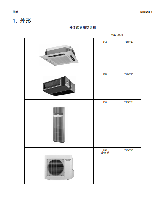 【大金】分体式商用直流变速FCY FBY FVY 技术资料